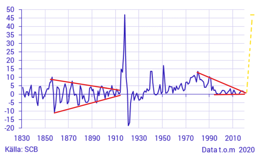 Den varierar och speciellt för några år sedan (2012-2016) var den lite för låg, men riksbanken har som mål att den ska vara just 2% och de höll ju på med minusräntor och allt möjligt fifflande för att få upp den igen. Man ska också komma ihåg att den bara mäter vissa konsumtionsvaror, bostadspriser och andra tillgångar har betydligt högre inflation.