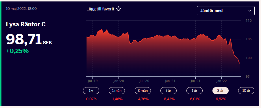 Jag betraktar det som att det snart är köpläge på obligationer. Räntehöjningarna pågår inte hur länge som helst. Sålt skulle man gjort för ett år sedan