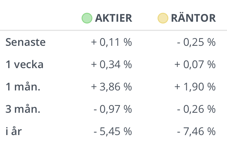 Därför jag kör och har kört 100% aktier sedan jag började spara på LYSA. Ränte-fonder är en fälla för småsparare. Förstod från ruta 1 att sparkonto är samma fast bättre. Räntefonder är bara värt det för stora institutioner som utgör en bas i det finansiella systemet.