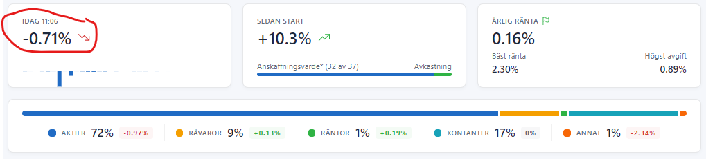 Min känsla är att räntor och råvaror i portföljen är lite utav en ”return free risk”. Men kan såklart ha fel?