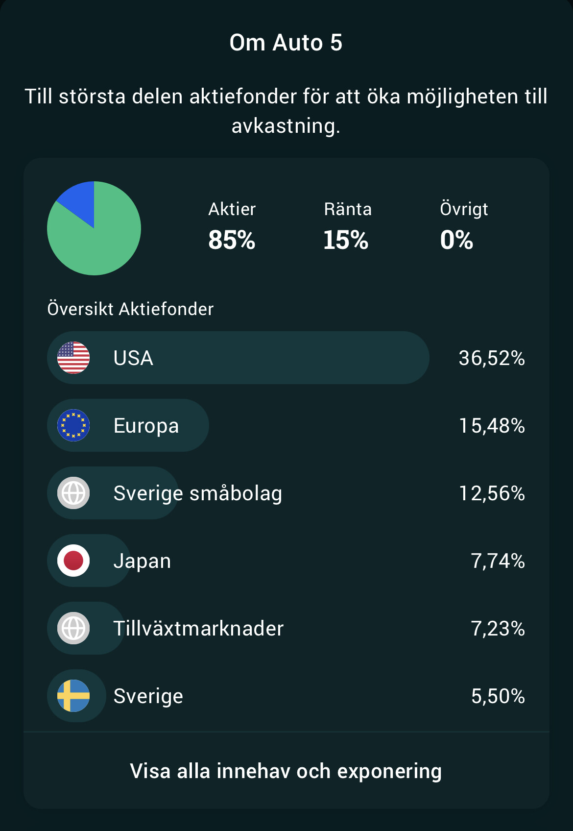Precis, ser för övrigt att Avanza har stuvat om rejält i sin Auto 5 portfölj. Optimerar och avviker rejält från marknadsvikter och har även en hel del aktiva småbolagsfonder.