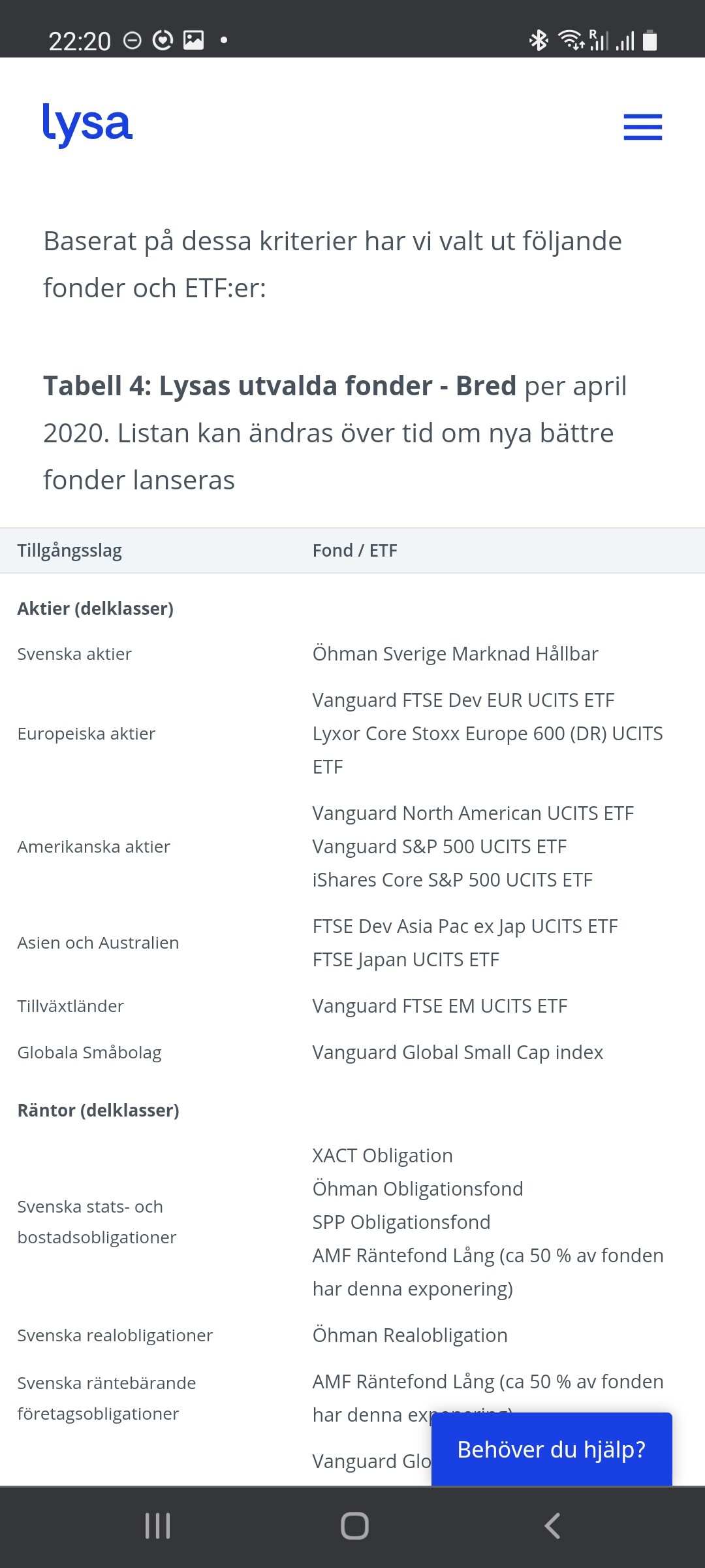 Kollade på Lysas whitepaper, du har rätt. Svenska aktier i Öhman Marknad Hållbar med endast 76 bolag som ska stå för 20% av aktieportföljen