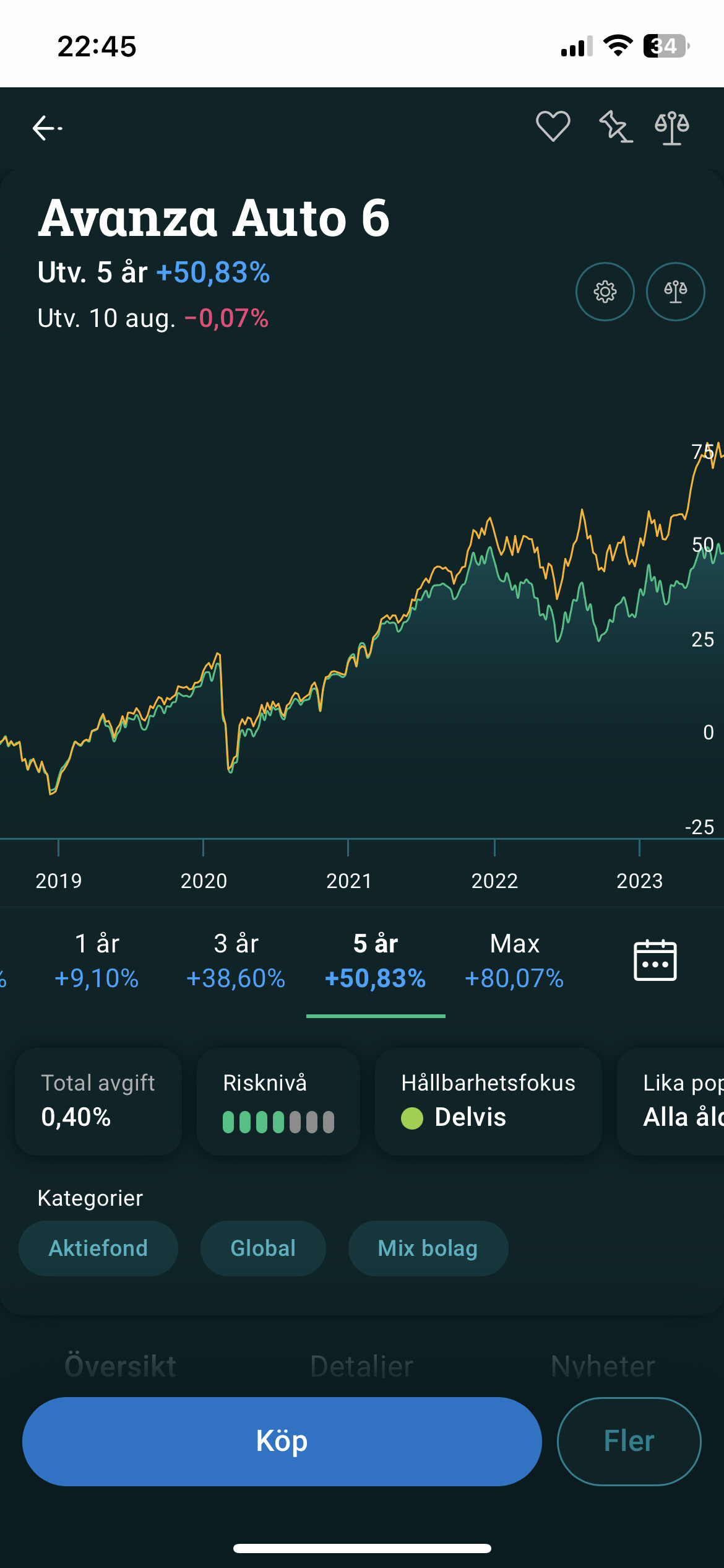 Det som ofta trycks på i jämförelser är att Lysa har lägre avgift, men avgiften för Avanza Auto 6 är i skrivande stund 0,400 % jämfört med Lysas 0,374 % vilket jag anser försumbart i sammanhanget.