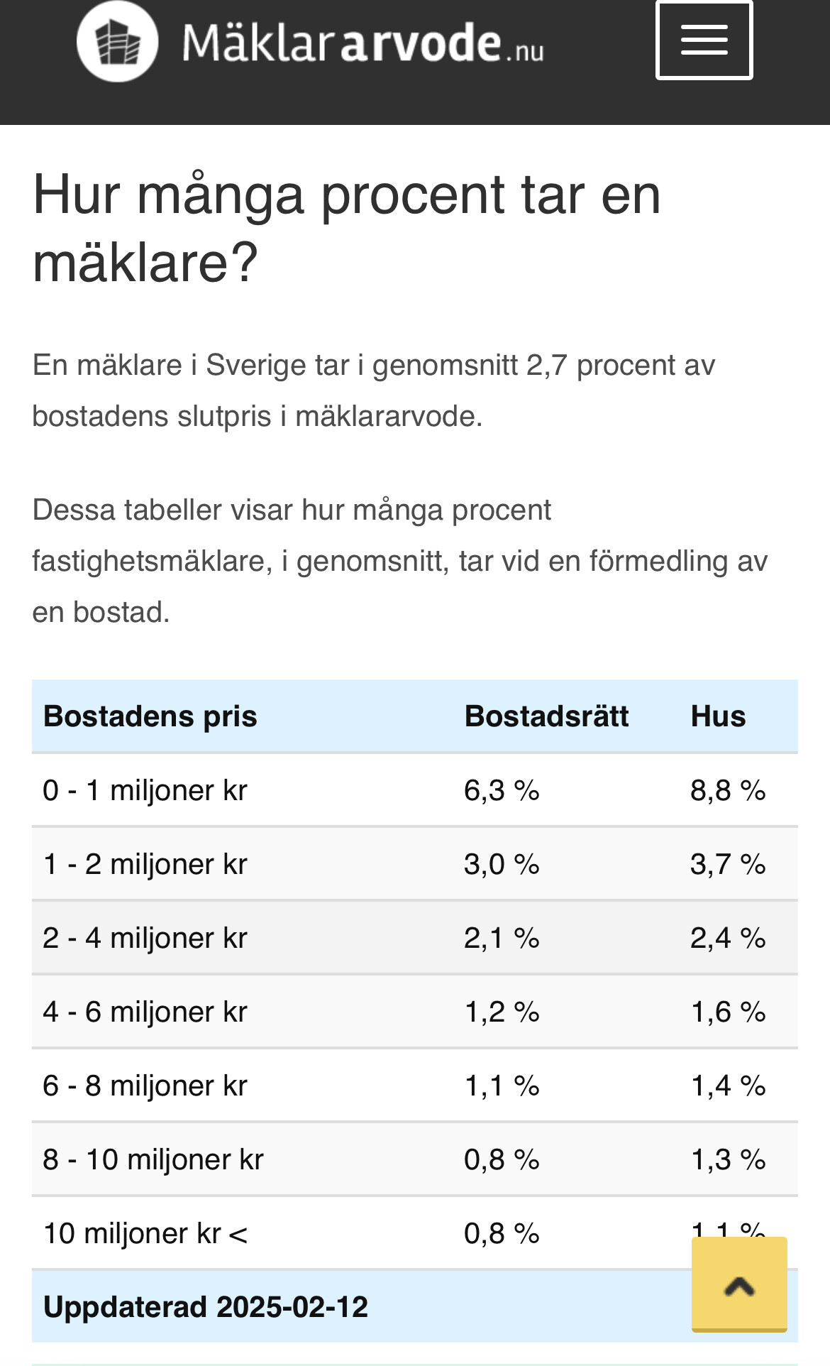Dvs om jag är nöjd om huset säljs för 5mnkr så är jag ok med 10% på överskjutande del eftersom allt över detta är en ”bonus”. Skulle valt fast om mäklaren vill ha % efter exv 4,5mnkr. Men är mest psykologiskt snarare än vad jag faktiskt skulle spara/förlora i kronor.