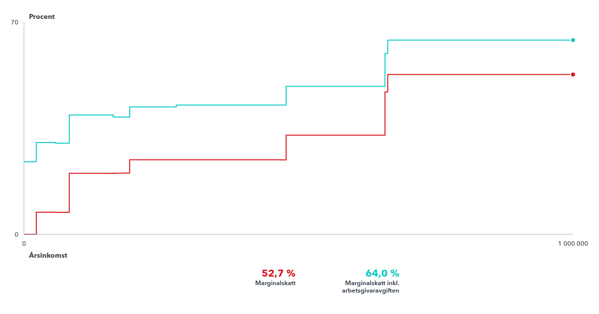 Nettonyttan av att tjäna så mycket (=jobba så mycket/ha stort ansvar) är i Sverige ytterst liten.