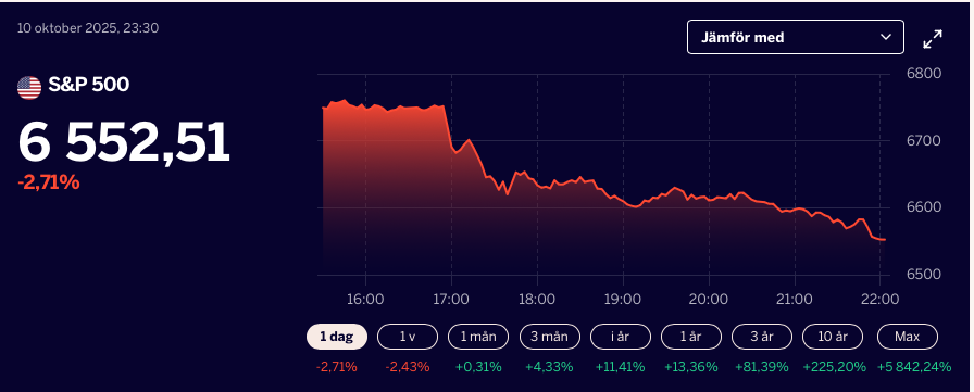 Förlåt jag blandade ihopa det. Det var nyheterna som sa minus 8% och värsta dagen sen tullkriget böjade.