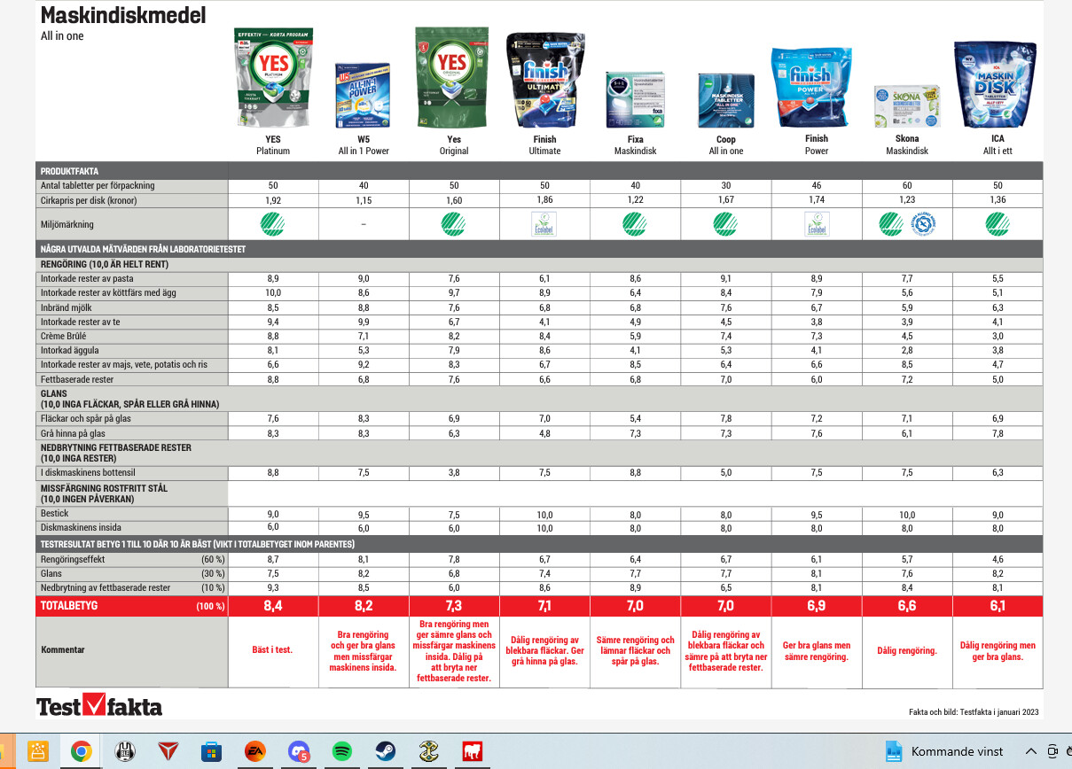 Enligt råd och rön så fick weba sämst betyg av alla diskmedel och skulle säga det är ovanligt uselt betyg om man jämför alla tester överlag.