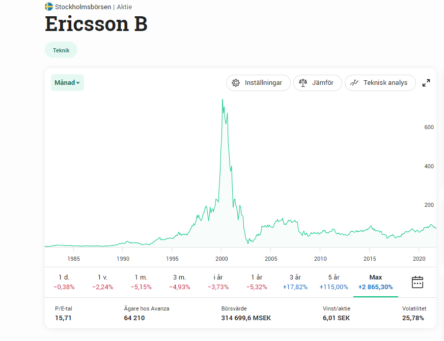 En av mina hårda lärdomar. Köpte 100 aktier på en bra bit över 200 kr. Åkte hissen ända ned till 3,80 kr och nyemission då jag köpte 100 aktier till. Sålde allt på någonstans kring 70 kr.