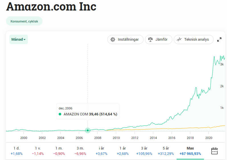 Fast det stämmer ju inte heller, för i så fall hade ju Framfab, Icon Medialab, Spray och Boo . com varit lika bra bolag att sätta pengarna i som Amazon. Samtliga de gick rakt ner i avgrunden. Amazon råkade vara den som avkastade extremt. Men det var helt omöjligt att veta innan. Det hade precis lika gärna kunnat vara Spray som varit Amazon idag och Amazon hade varit en totalkatastrof till investering.