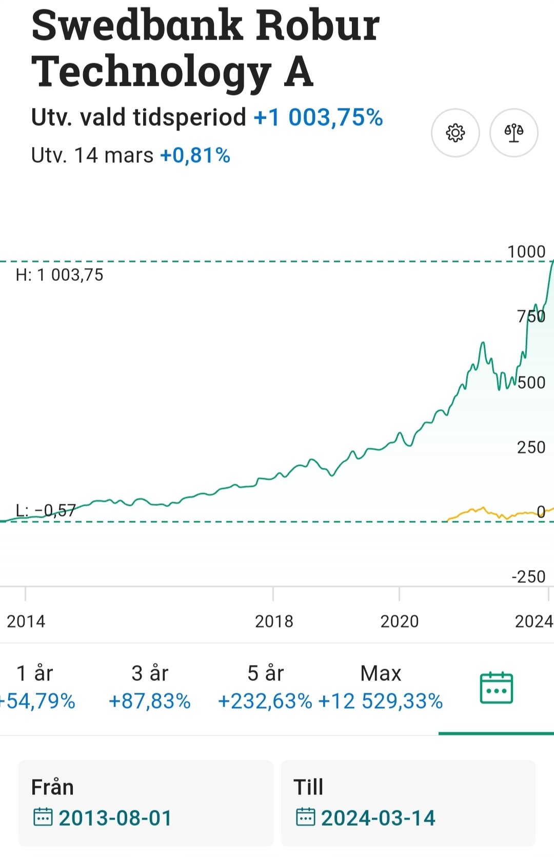 Jag har Nordnet Teknologi, en indexfond som rör sig som SwRo Tech, men är medveten om att teknikfondernas brutala nedsida i fallande konjunktur faktiskt äter upp en hel del av den fina avkastningen i stigande marknad.