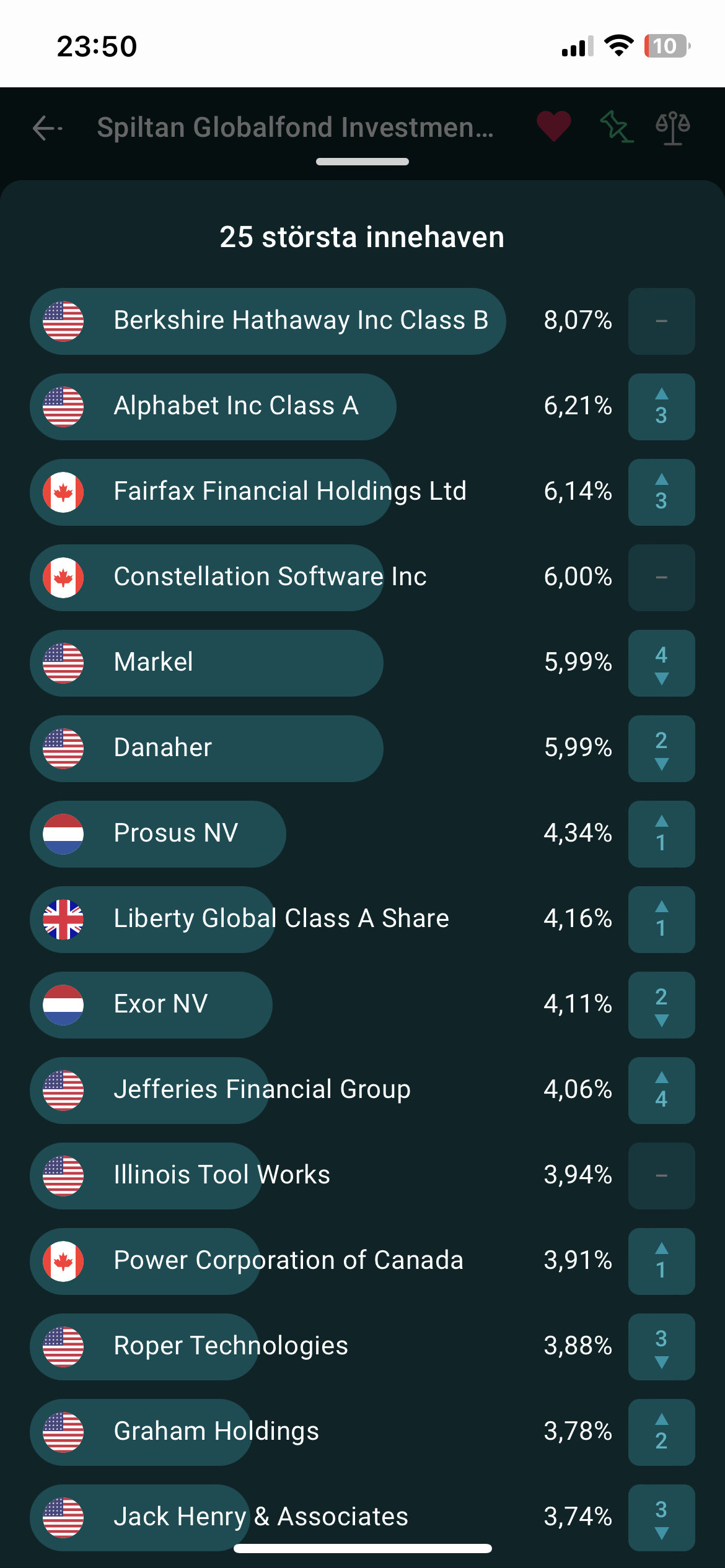 Ja det är ju en helt logisk vinkel. Jag har aldrig funderat i dom banorna. Därför är det bra att vädra sina ideer och få svar från er mer erfarna och kunniga på området. Men i Spiltan Global IB kan jag endast se ett gemensamt innehav med LF Global i dom 25 största innehaven. Rent spontant känns det som att dom här tre kompletterar varandra bra.
