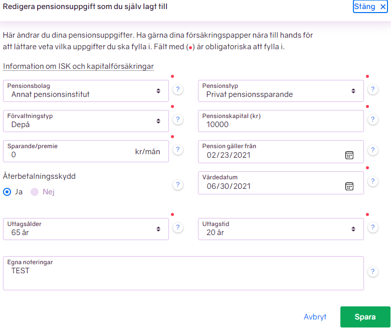 Dvs mycket av mina besparingar kommer inte upp på minpension, om jag inte lägger in dem manuellt.