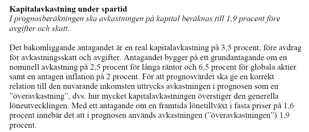 På beräkningarna på min pension så räknar dom med avkastning på 1,9% vilket kanske är rimligt på allmänna pensionen men inte tjänstepensionen? Prognosen ser ju bra ut om jag jobbat hela tiden - men på inget sätt extremt bra (säg få 60% av lönen). Alla här på forumet säger ju dock att 1,9% är rimligt?