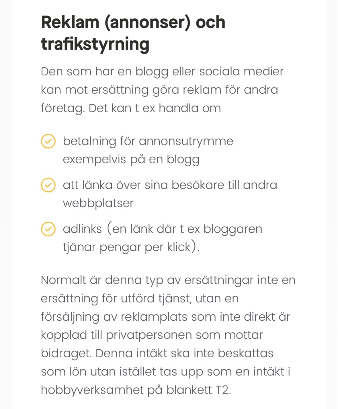 Tack alla för snabba svar. Jag blir inte mycket klokare dock haha, får ringa och höra med Skatteverket för att vara helt på det torra. Men att intäkter från en hemsida skulle anses vara en hobby har jag inte lyckats hitta någon mer information om, varför är allt så luddigt? Enklaste hade väl varit om reglerna var aningen mer exakta?