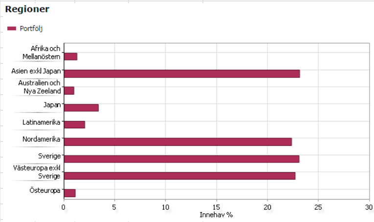 På grund utav att de lyckats förstöra en sedan tidigare väl fungerande tjänst tänkte jag fråga ifall någon känner till några bra alternativ? Allt jag vill göra är att kolla spridningen / region för min portfölj och tidigare fick man ut en tjusig bild från morningstar enligt nedan där jag lätt kunde utläsa Sverige men nu ligger det inbakat i Europa så det blir ännu drygare att få fram det man vill.