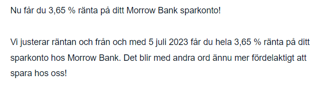 Morrowbank har höjt 2-3 gånger när jag påpekat att nya kunder får högre eller när jag skrivit att “Riksbanken har ju höjt styrräntan, kan ni erbjuda högre sparränta?”