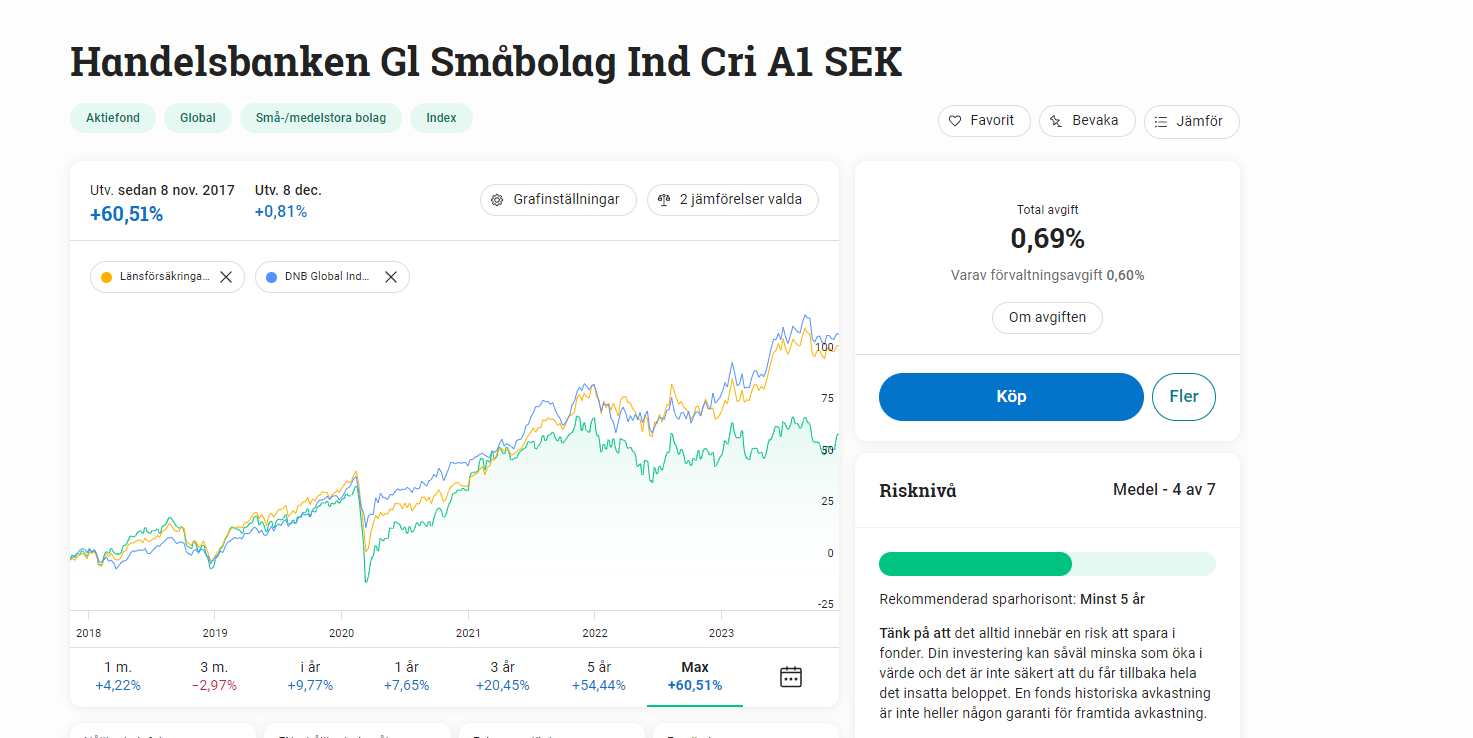 Är det någon som har en historisk jämförelse mellan MSCI World och indexet Handelbanken GI Småbolag följer?