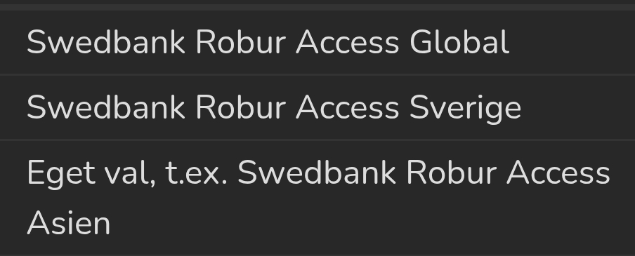 Såg att det finns billigare varianter i motsvarande accessfonder (passiva) hos Swedbank men funderar på alternativet nedan…
