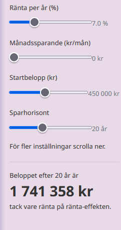 450 000 på börsen med 7% ökning är 1,75msek efter 20år