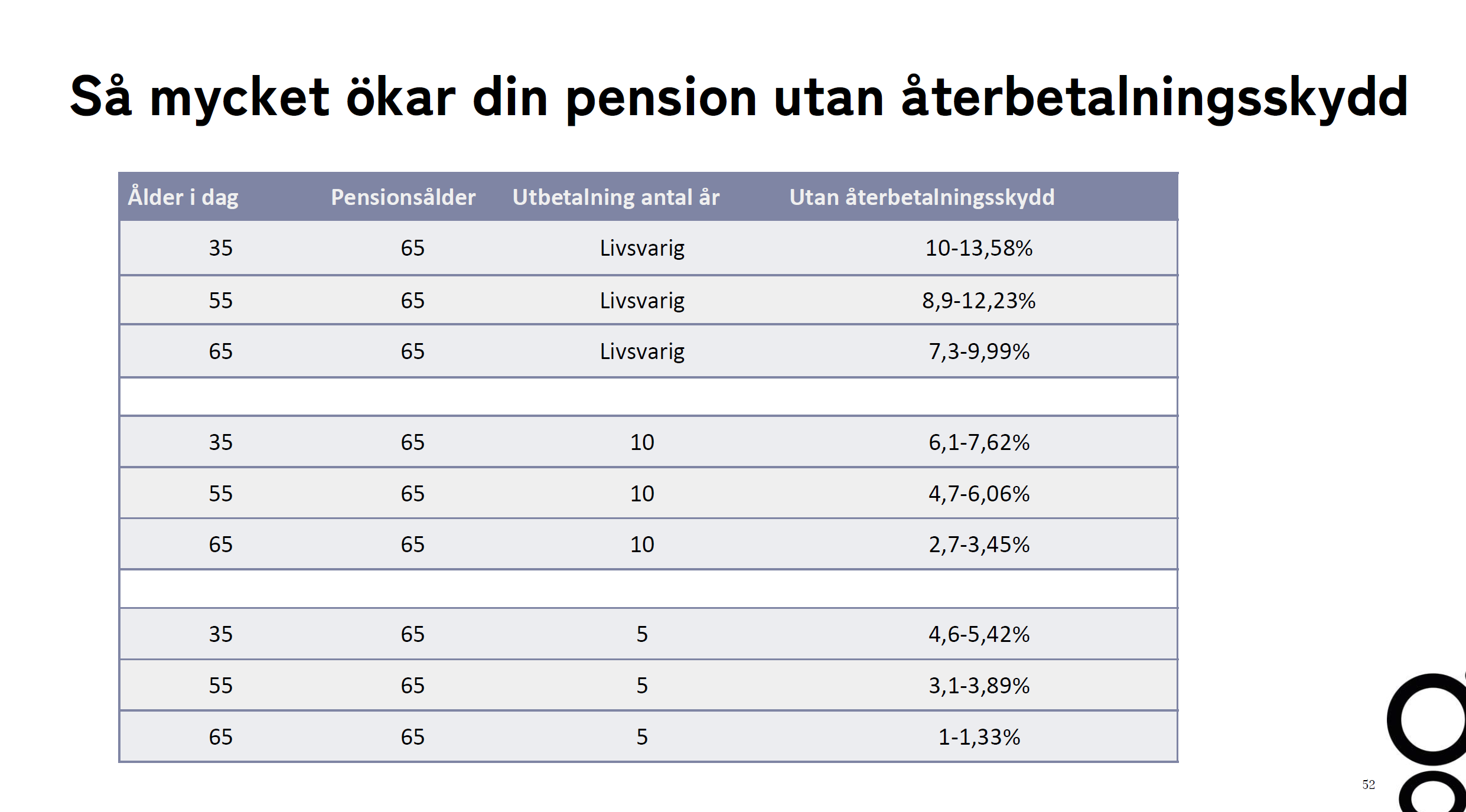 Betala mer = få pengar om någon av oss dör.