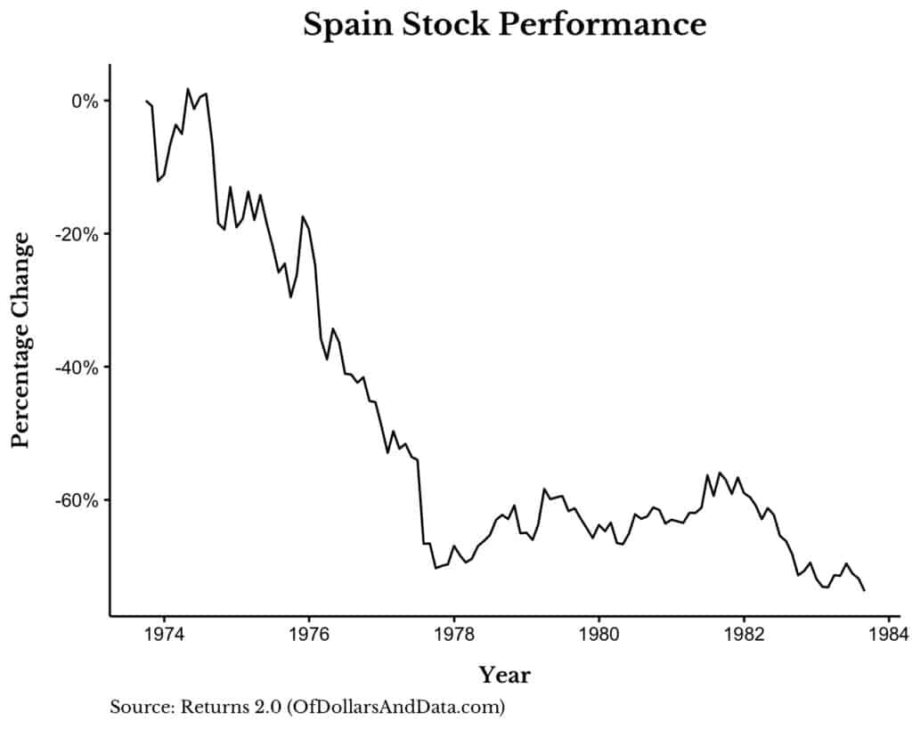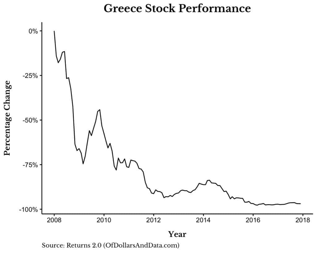 Though bad markets (and bad decades) will always be out of your control, the one way you can counteract these investing nightmares is to limit your exposure to each of these markets. As bad as Spain was in 1973-1983 or Greece was from 2008-2018, any rational investor should have been diversified across multiple equity markets.