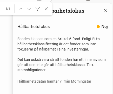 Jag kommer ihåg att jag kikade på fonden och den hade ESG och exkluderade bolag.