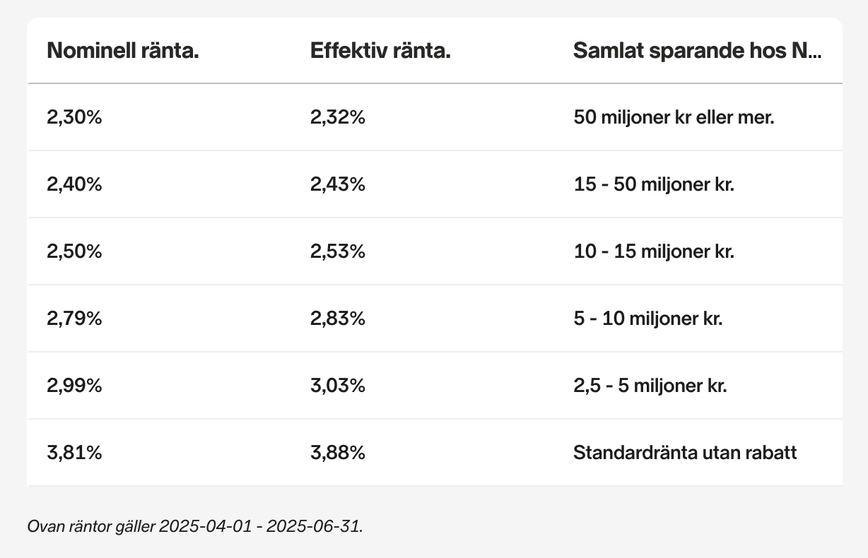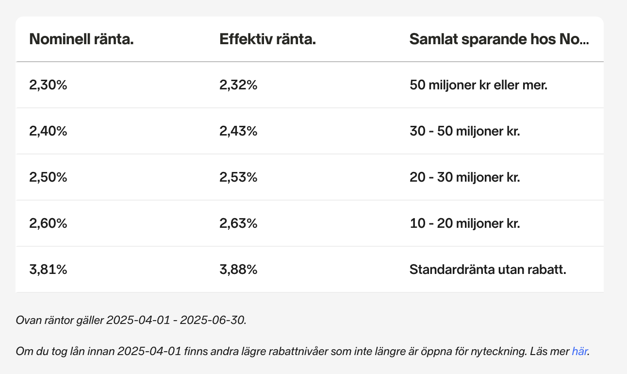 Sen från april verkar de ha sänkt det ytterligare, till 2.5M Bolån Private Banking - Lägsta listräntan på marknaden | Nordnet