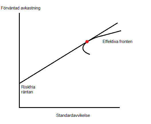 Det är inte svårt att “slå” index om du är villig att ta mer risk. Den klassiska illustrationen av den effektiva fronten visar just detta. Jag ritade den åt dig. Som du ser fortsätter den kurvade linjen upp.