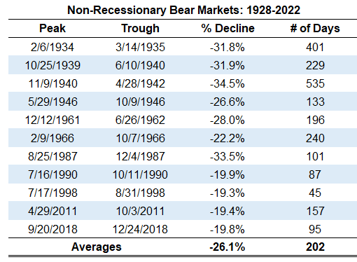 I count 11 non-recessionary bear markets over the past 90+ years: