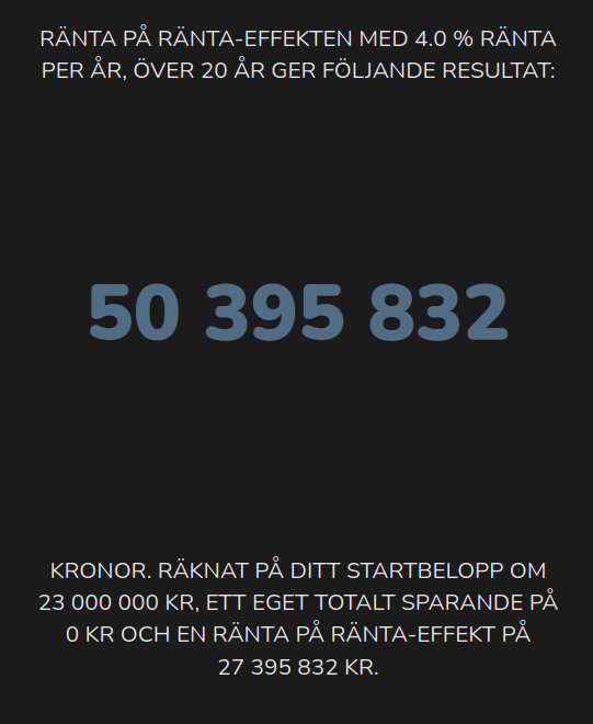 Skulle allting stanna nu och du väntar i 20 år så tror jag att du har en stor chans att ha ganska mycket pengar? Grattis!