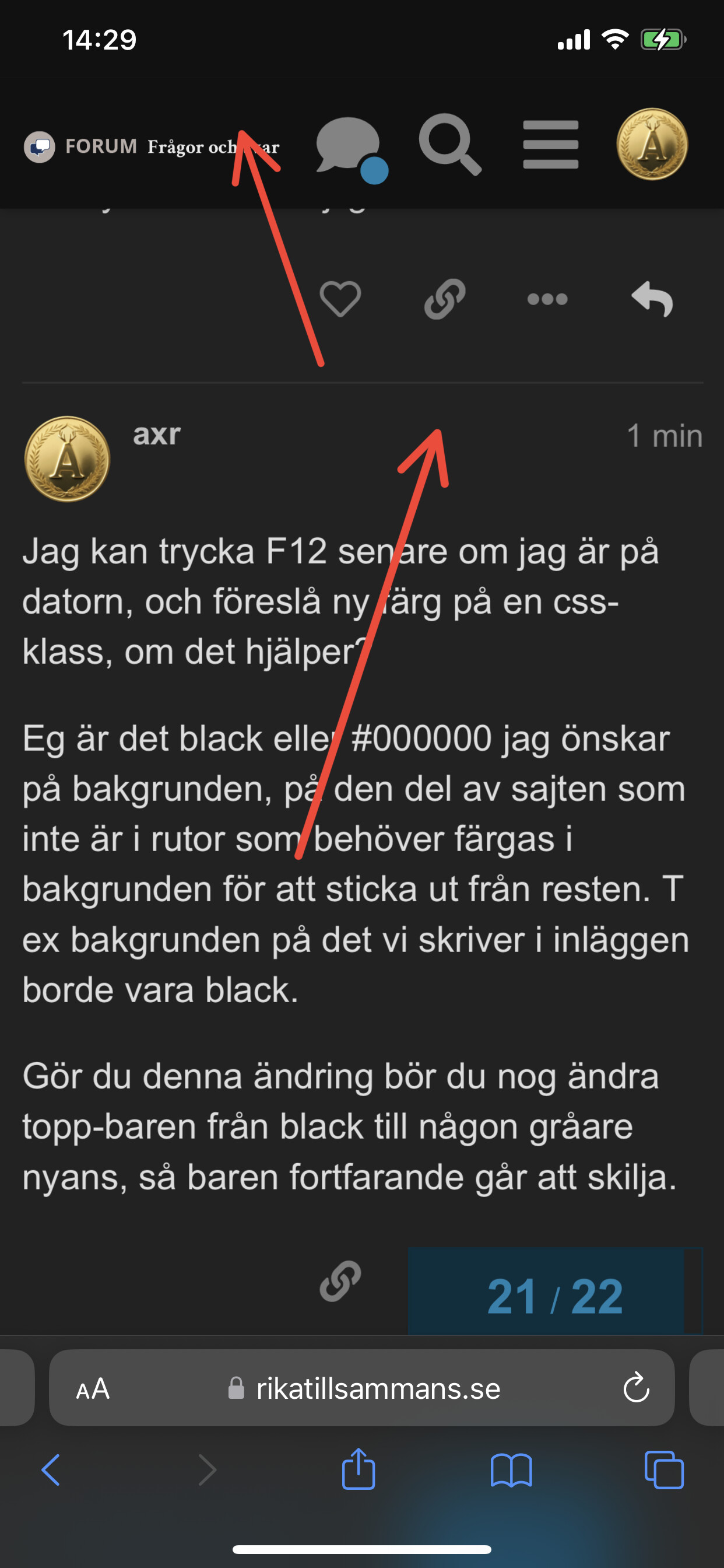 Jag kan trycka F12 senare om jag är på datorn, och föreslå ny färg på en css-klass, om det hjälper?