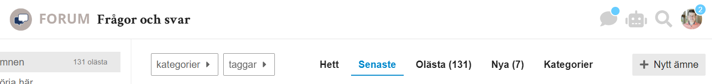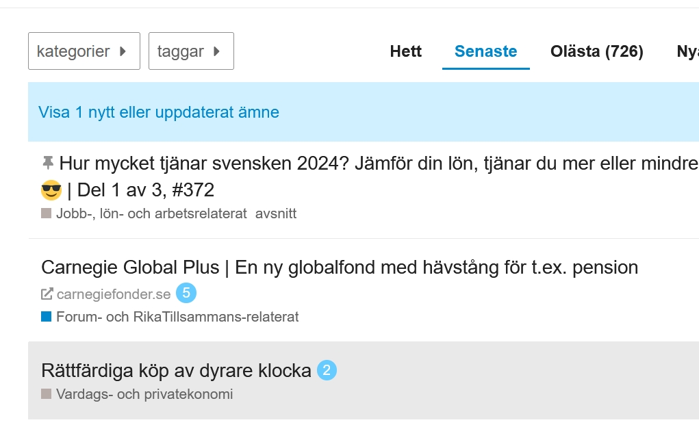 Nej, inte den jag menar. Jag kollar på datorn, och om jag varit borta en stund på andra hemsidor och kommer tillbaks till RT-forumet så stod det typ “5 nya ämnen sen senast” högst upp. så klickar man på den blåmarkerade texten och de 5 senast ämnena dök upp högst upp.