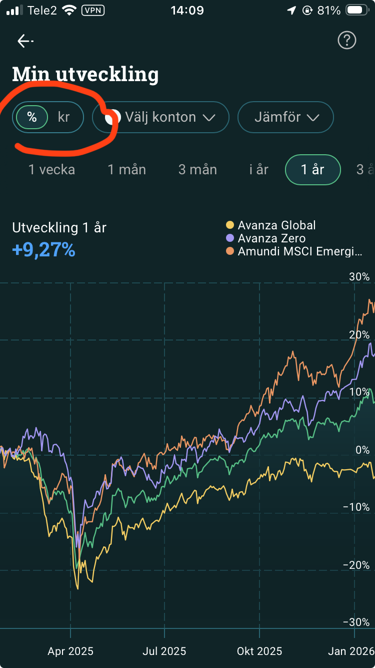 Fast visas utvecklingen i % verkligen rätt på Avanza när det gäller värdepapper i olika valutor? Vi har haft detta framme innan - att det visas rätt på Nordnet men inte på Avanza.