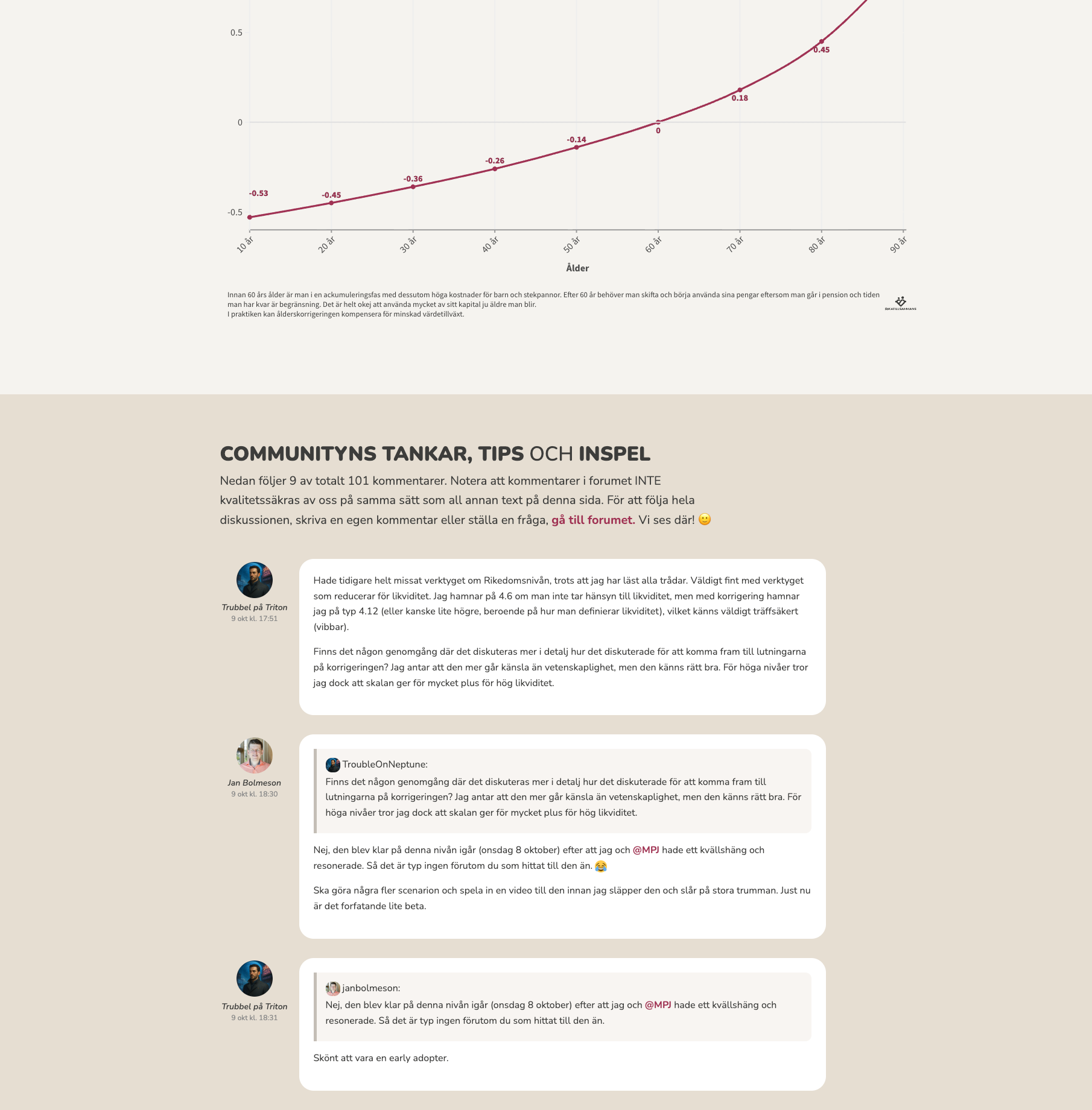 Kan ni hjälpa mig tänka. Jag tänker att många av sidorna kommer att hämta kommentarer från forumet. T.ex. rikedomsnivå-räknaren.