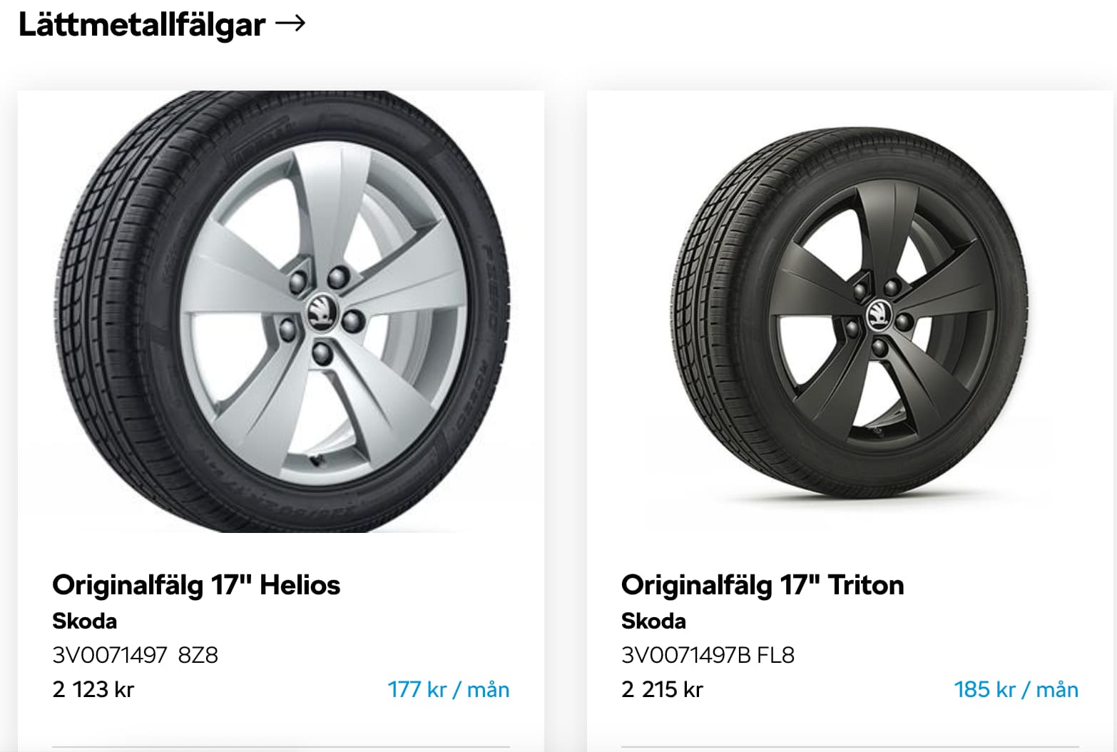Jag betalar gärna lite mer för kvalitet så skulle satsa på de enklaste och mest lättvättade fälgarna som är orginaltillbehör inom VAG. Samma storlek, bultmönster och inpassning som du ska ha borde finnas på många modeller.