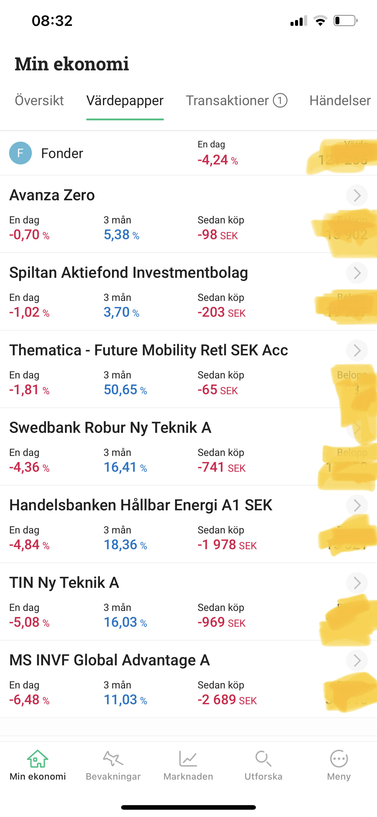 Är väldigt ny på det här med fonder och har nyligen kastat mig in i det här. Kanske valde en dålig tidpunkt att göra det Givetvis medveten om att långsiktighet är viktigt, men lite tråkig början med röda siffror ett litet tag nu.