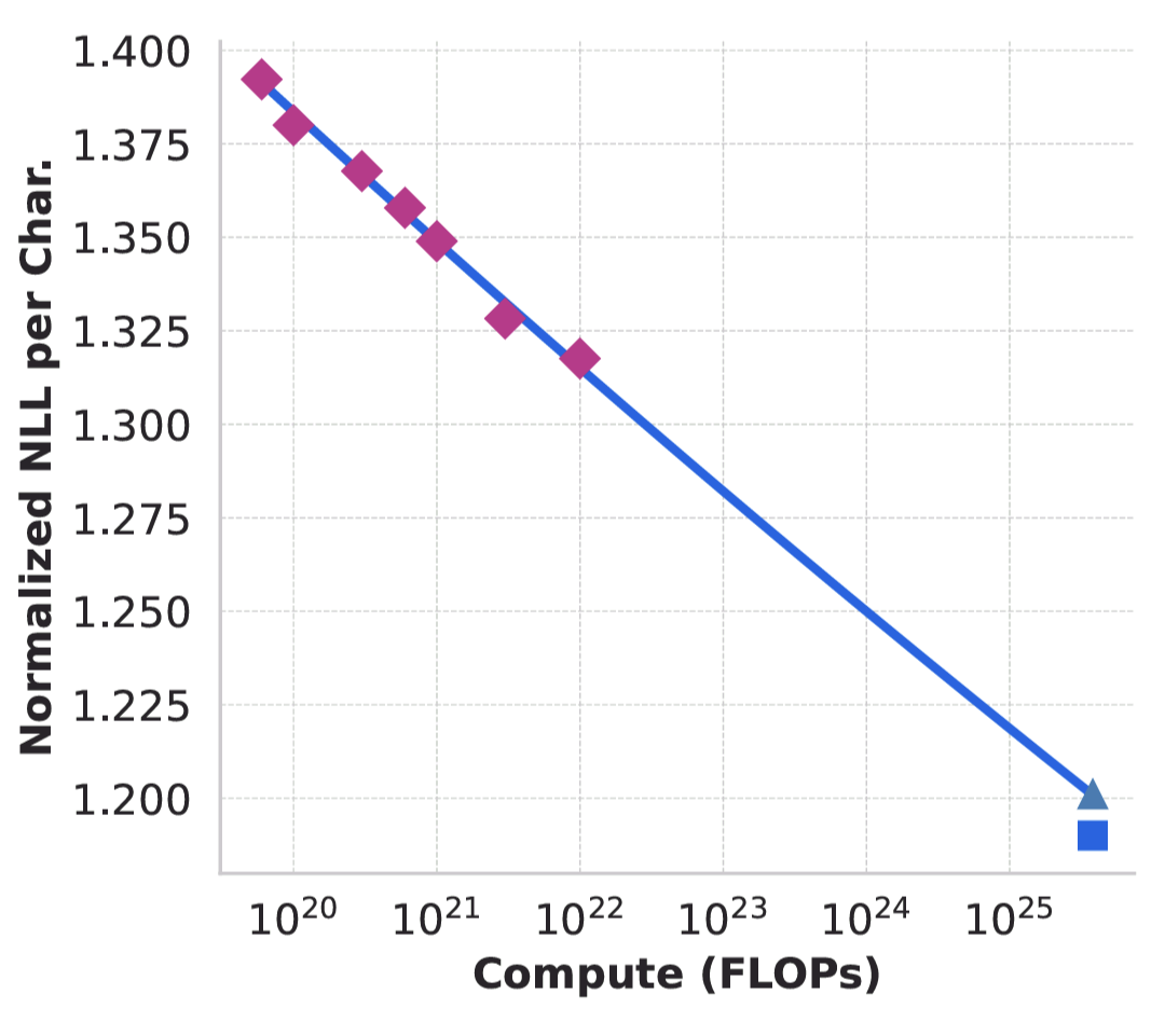 Det är coolt att de kan träna 7 små modeller, plota deras prestanda på ett visst benchmark och sedan dra en trendlinje för att kunna gissa hur bra deras 405B modell kommer bli.
