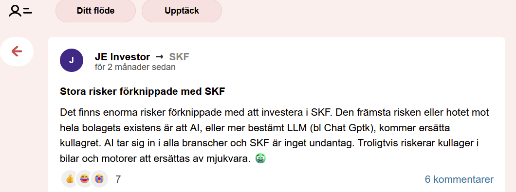 Men att de som investerat massor i “AI” kommer få tillbaka sina stålar är väl tveksamt. Jag tror det blir svårt att få till 0% avkastning. Däremot kommer väl andra profitera i ett senare skede. Det brukar bli så.