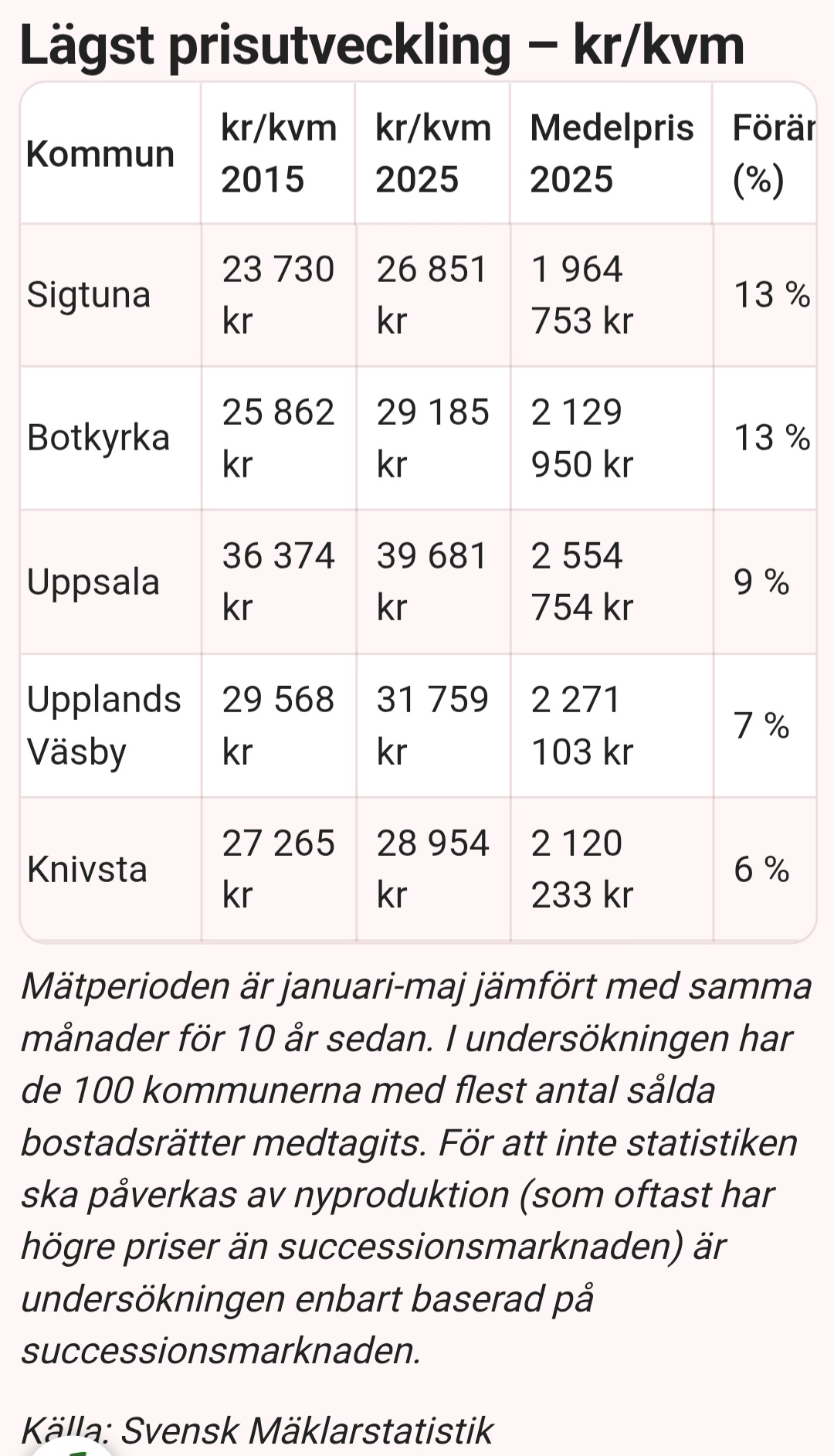 @MarcoS Du såg att det “bara” var de hundra kommuner med flest sålda bostadsrätter som var med va’? Många kommuner i Sverige har ju knappt bostadsrätter eller underlag nog för att komma med i statistiken.