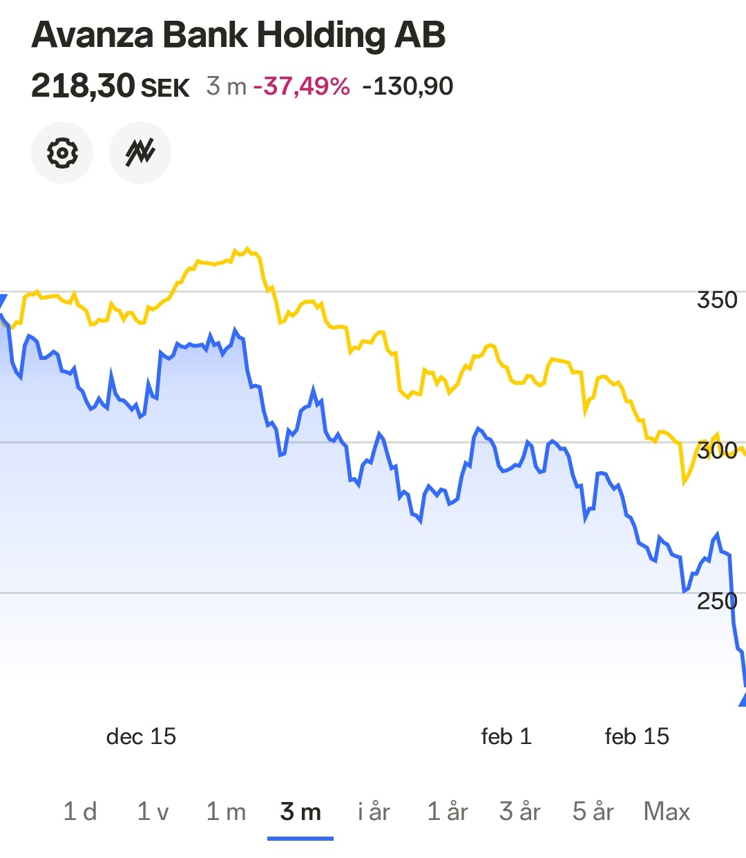 Jag har själv en mindre lekhink (kul att ha som hobby och att försöka slå sitt eget indexsparande!) - där jag köpte in mig i Avanza för inte så länge sen. Finns väldigt mycket som talat för bolaget långsiktigt (hög grad av digitalisering, brett kundunderlag, möjlighet att fortsätta ‘äta sig in i’ storbankernas stora pengamaskin bolån etc.). Det som är svårt kortsiktigt är att förra året var extreeemt vad gäller vinsttillväxt, så jämförelsetalen på kortare sikt är väldigt tuffa…