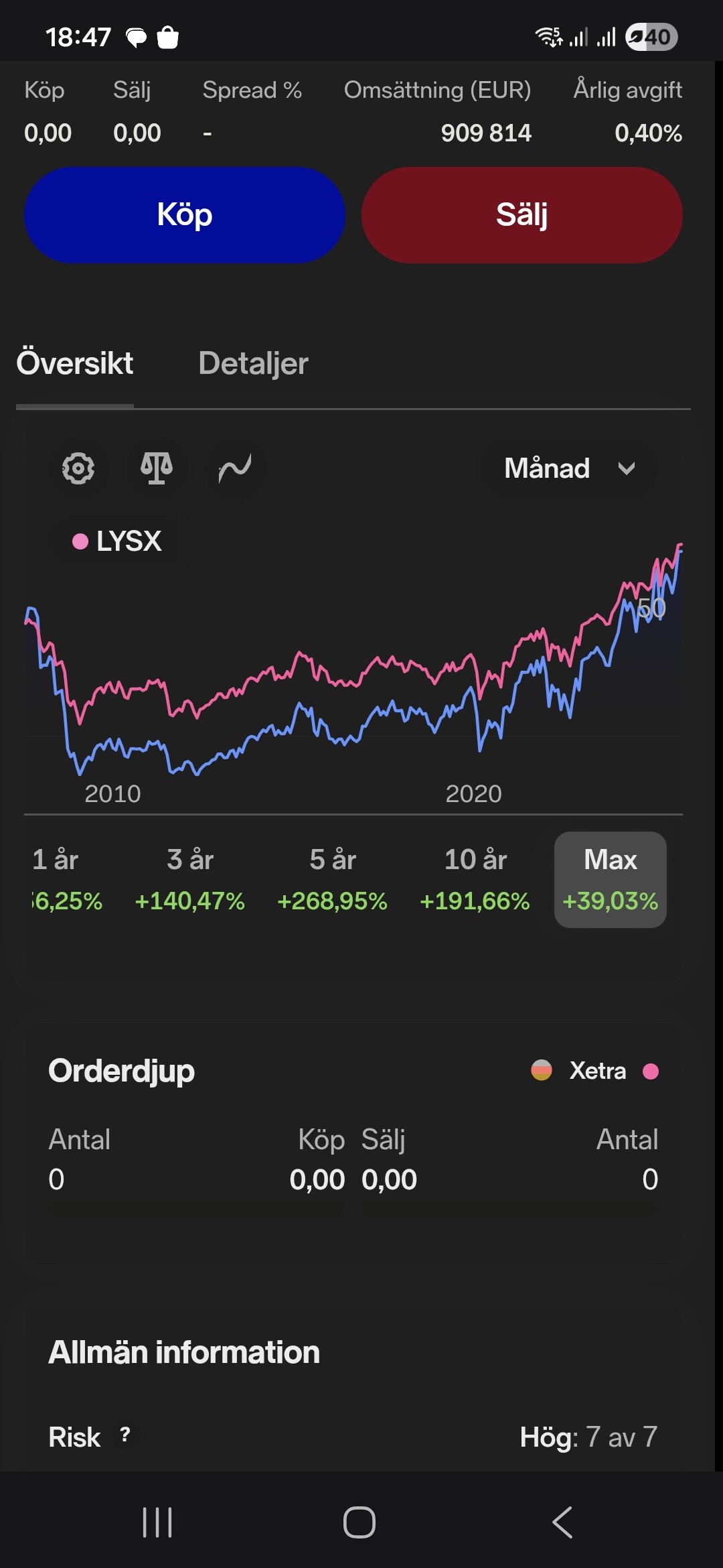 Minimicourtage för xetra är på är 39 sek