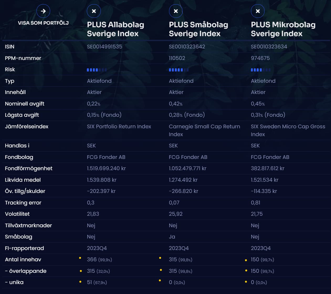 Dock verkar inte Plus Småbolag överlappa om jag tolkat listan rätt som de tillhandahåller? Då skulle man kunna köra på Småbolagsfonden i en lekhink då kanske?