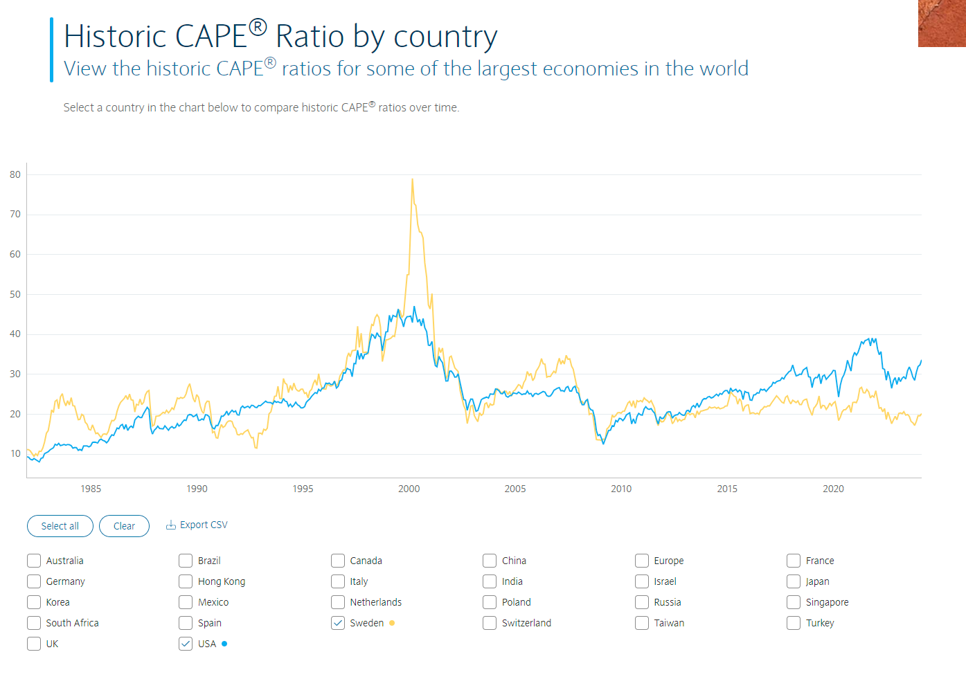 Hmmm jag är med dig lite på usa hyffsat högt snitt p/e just nu om jag fattat det rätt runt 30?