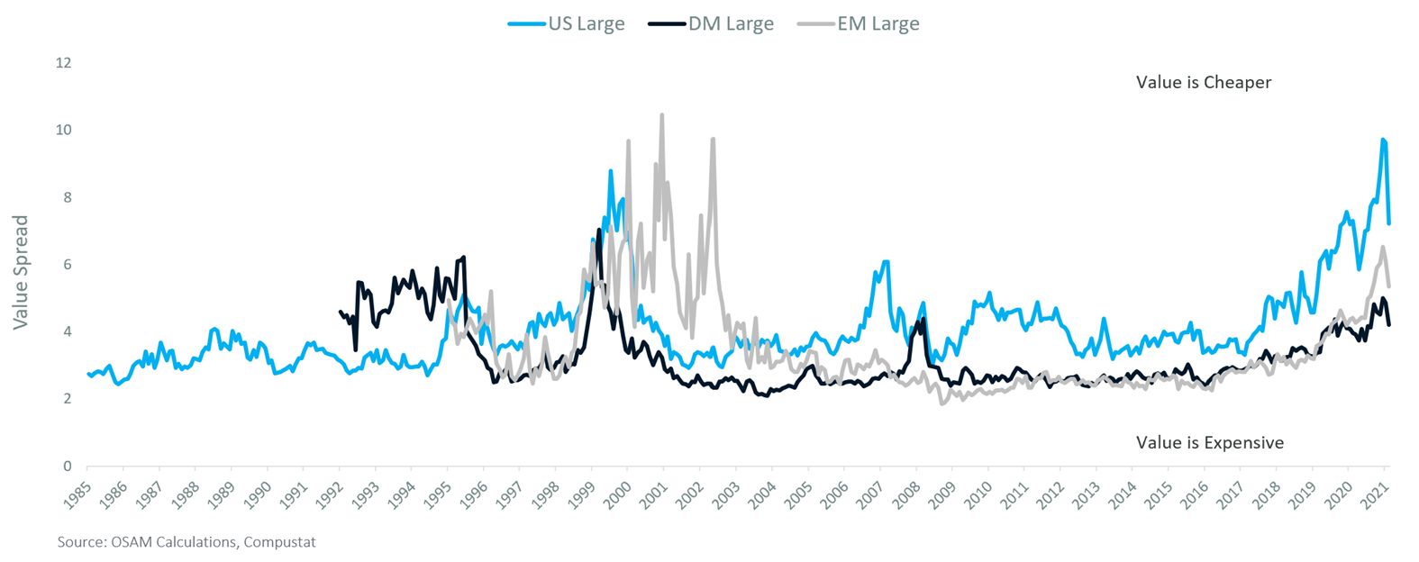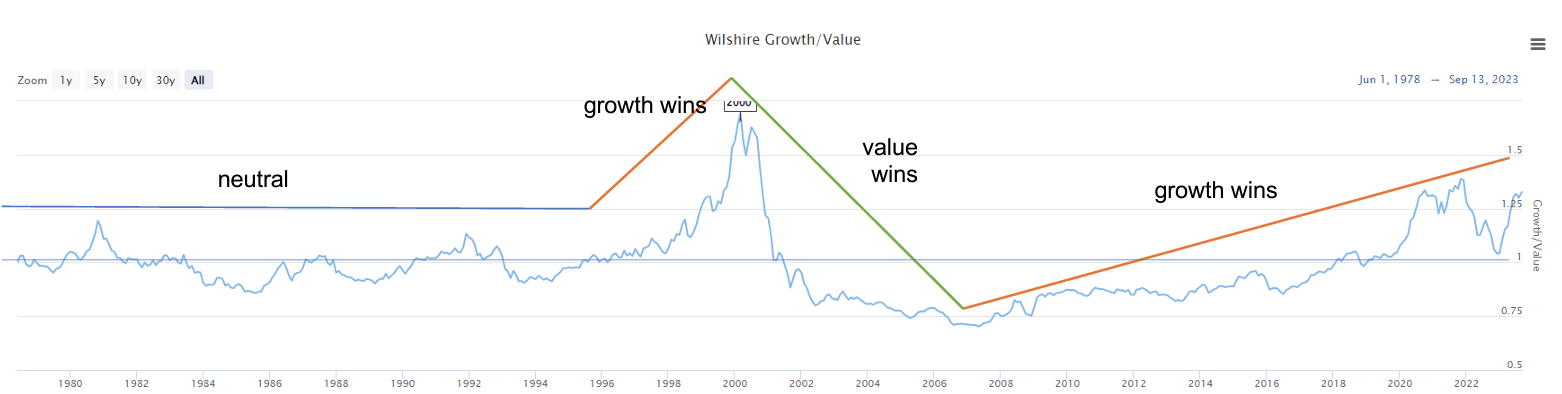 Tillväxtbolagens överlägsna avkastning (relativt till värde) senaste decenniet är något väldigt ovanligt.