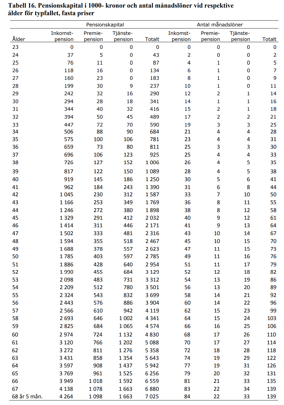 Nåja, jag har varit i kontakt med Pensionsmyndighetens statistikavdelning och grävt lite mer. De använder de sig av en typfallsmodell som de använder när de gör simuleringar eller ska visa hur ändringar slår. Personen i typfallsmodellen tjänar som medelpersonen i Sverige (36 100 kronor). Så denna jämförelse ger en hint, men det är som sagt ingen ren vetenskap, utan bara en jämförelsemodell.