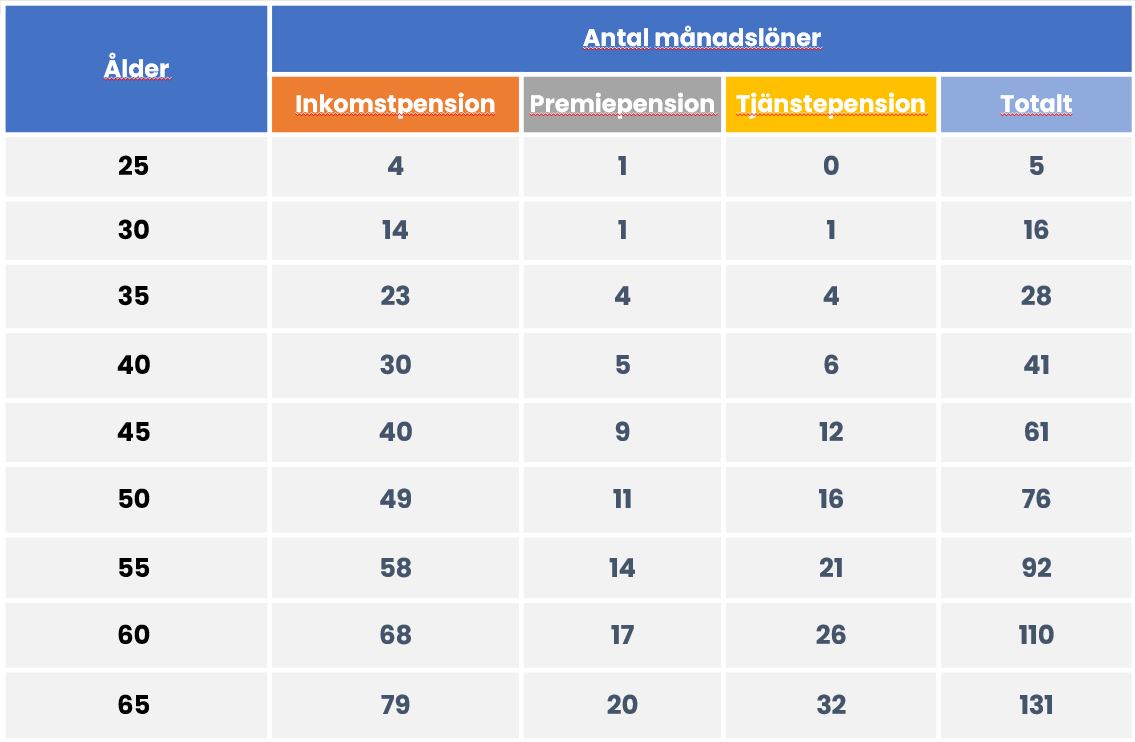 Inkomstpension - 14 månadslöner (15 i tabellen)