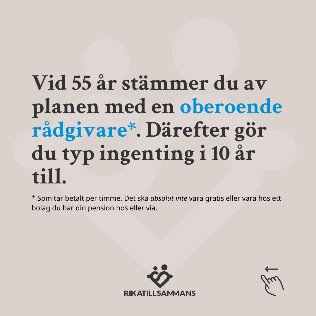 ”Ta gärna eventuell pensionsrådgivning som du får via arbetsgivaren men tro inte på att vad de säger är bäst för dig”