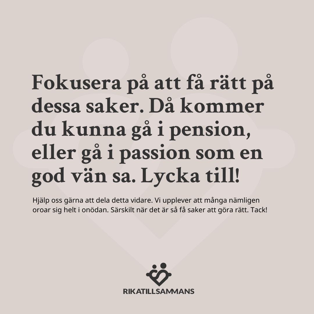 Därför är detta en inbjudan att släppa eventuellt dåligt samvete eller oro för pensionen. Med dessa punkter har du gjort mer än de flesta. Det brukar lösa sig med pensionen. Bara att du har läst hit, är ett tecken på att du har ett intresse. Det räcker längre än man tror. Lycka till!