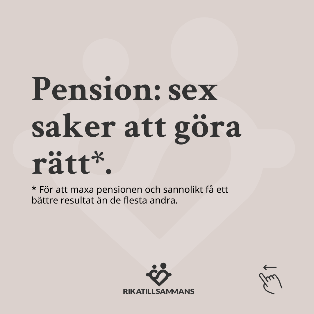 Här kommer utkast på en karusell till sociala medier om de sex viktigaste sakerna kring pension (på 10 bilder och 2200 tecken). Så forumet, låt oss göra det vi gör bäst. Såga det! Vad har jag missat eller borde ha gjort annorlunda? Eller, håller du med? (vilket vore a first ). Tack på förhand!