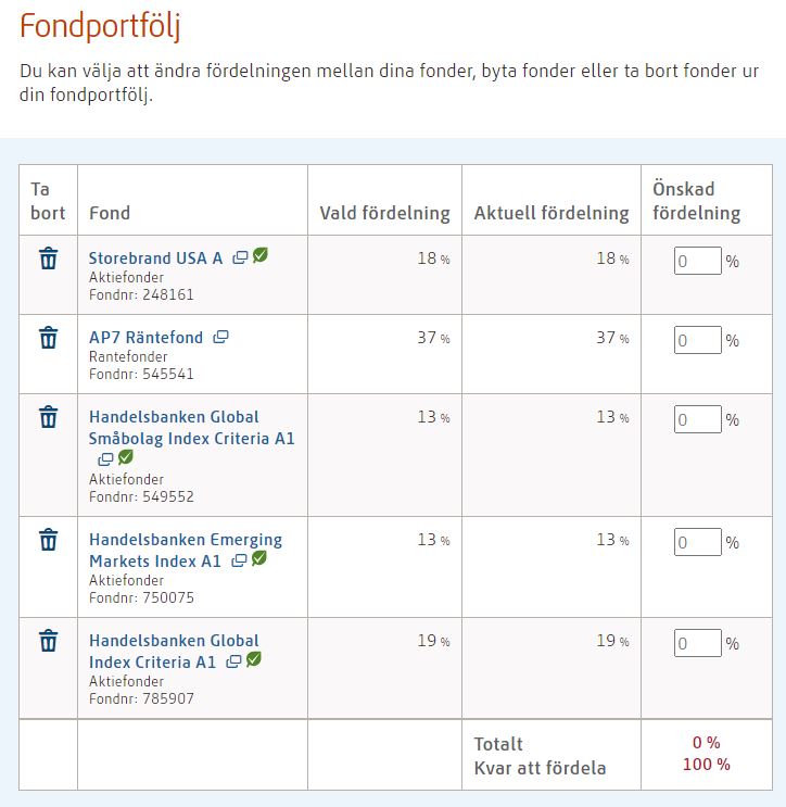 Nu har jag tagit mod till mig att lägga ut mitt pensions läge/situation. Tar mer än gärna råd på om jag ska ändra något i mina valbara fonder eller om det ser ok ut.